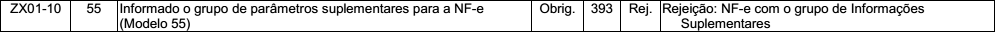 Quando for emitida uma NFe com o Grupo de Parâmetros Suplementares de NFCe (infNFeSupl), será retornado a rejeição “393 – NFe com o grupo de Informações Suplementares”.