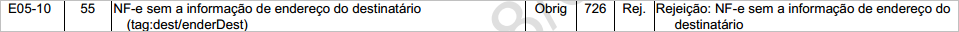 Quando for emitida uma NFe e não for informado o endereço do destinatário (enderDest), será retornado a rejeição “726 – NFe sem a informação de endereço do destinatário”.