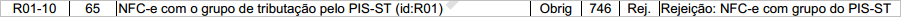 Quando for emitida uma NFC-e com o Grupo PIS-ST informado, será retornado a rejeição “746 – NFC-e com grupo do PIS-ST”.