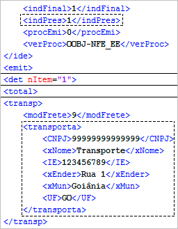 754 – NFC-e com dados do Transportador