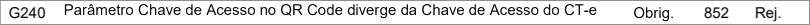 Rejeição 852: Parâmetro chave de acesso do QR Code divergente do CT-e - Como resolver?